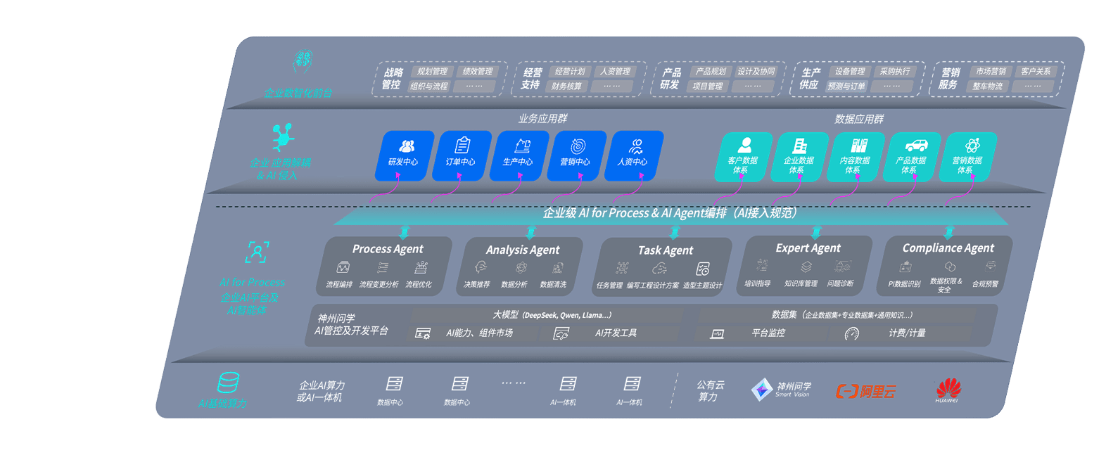 CMD368体育问学智车解决方案是一套基于AI技术的汽车行业智能化系统,,,覆盖从底层算力到顶层AI应用的全栈方案。。。方案由算力层、、模型层和应用层组成:算力层,,,,方案支持多种一体机配置,,,,具备云端灵活部署、、、、多云适配以及动态优化计算资源的能力;模型层,,CMD368体育问学平台版提供了企业级AI应用一站式构建与管理平台,,,,支持基于后训练强化技术的汽车企业专属模型的训练、、、评测和运营;应用层,,,CMD368体育问学DeepSeek版提供包括超级员工、、、、智能招采、、、、智能营销、、、智能客服、、、AI for BI等一系列解决方案,,可助力汽车行业实现数字化转型,,,让管理更智能、、响应更敏捷。。。